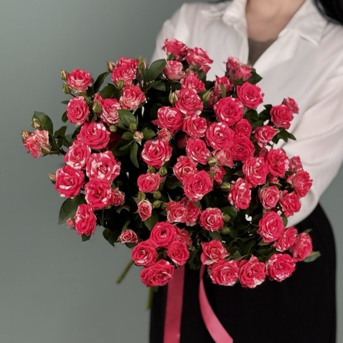 Прекрасный букет из охапки кустовых роз. Будет бережно доставлен в аквапаке и транспортировочной коробке.