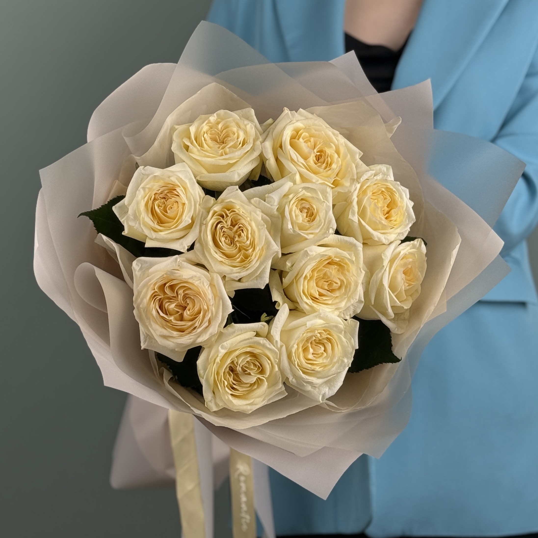 Замечательный букет стойких и ароматных роз сливочного оттенка, у данного сорта приятный парфюмированный аромат и очень красивое раскрытие бутонов, по мере распускания бутоны будут становиться светлее с каждым днём. Будет бережно доставлен в аквапаке и транспортировочной коробке.