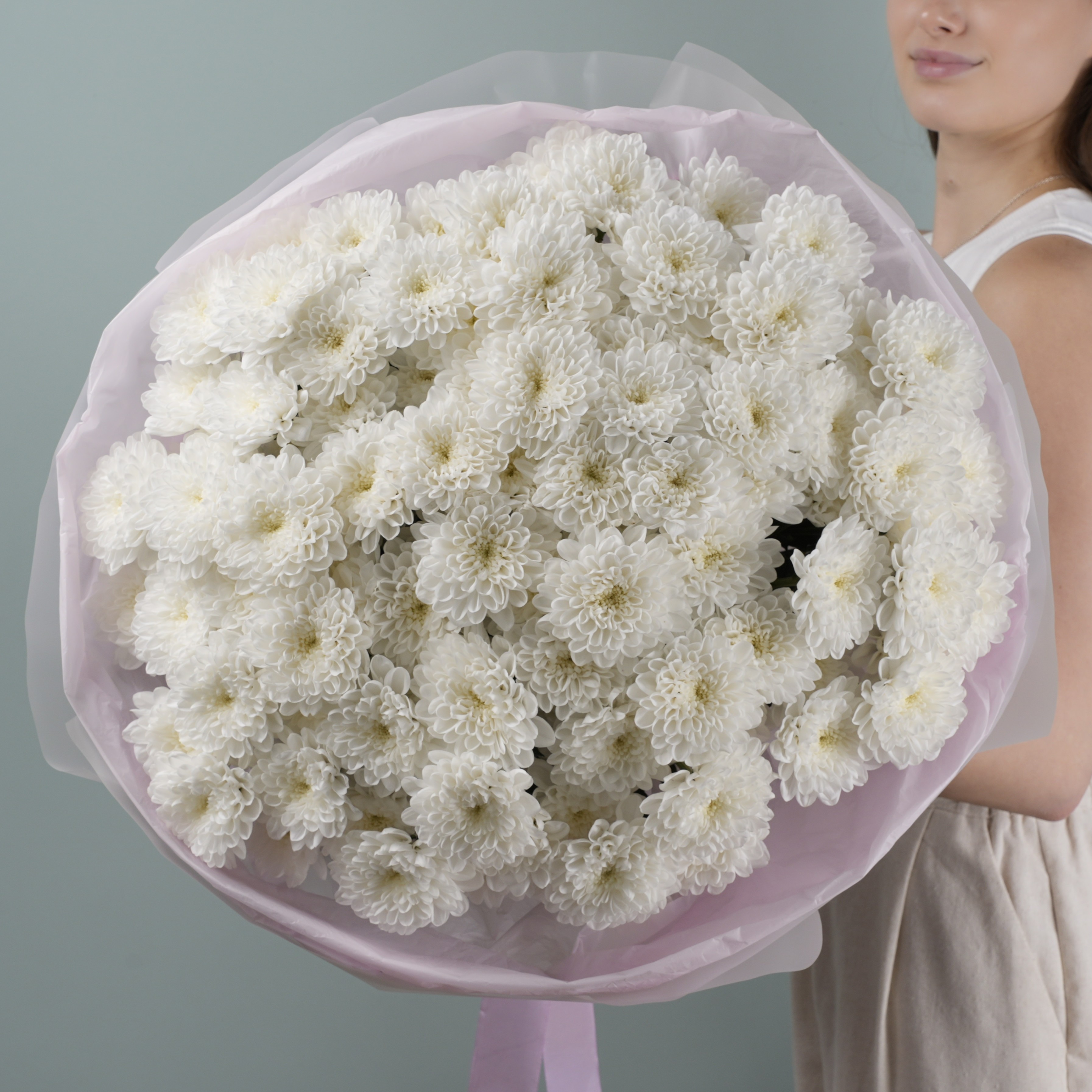 Стойкий букет из потрясающих белоснежных хризантем. Будет бережно доставлен в аквапаке и транспортировочной коробке.