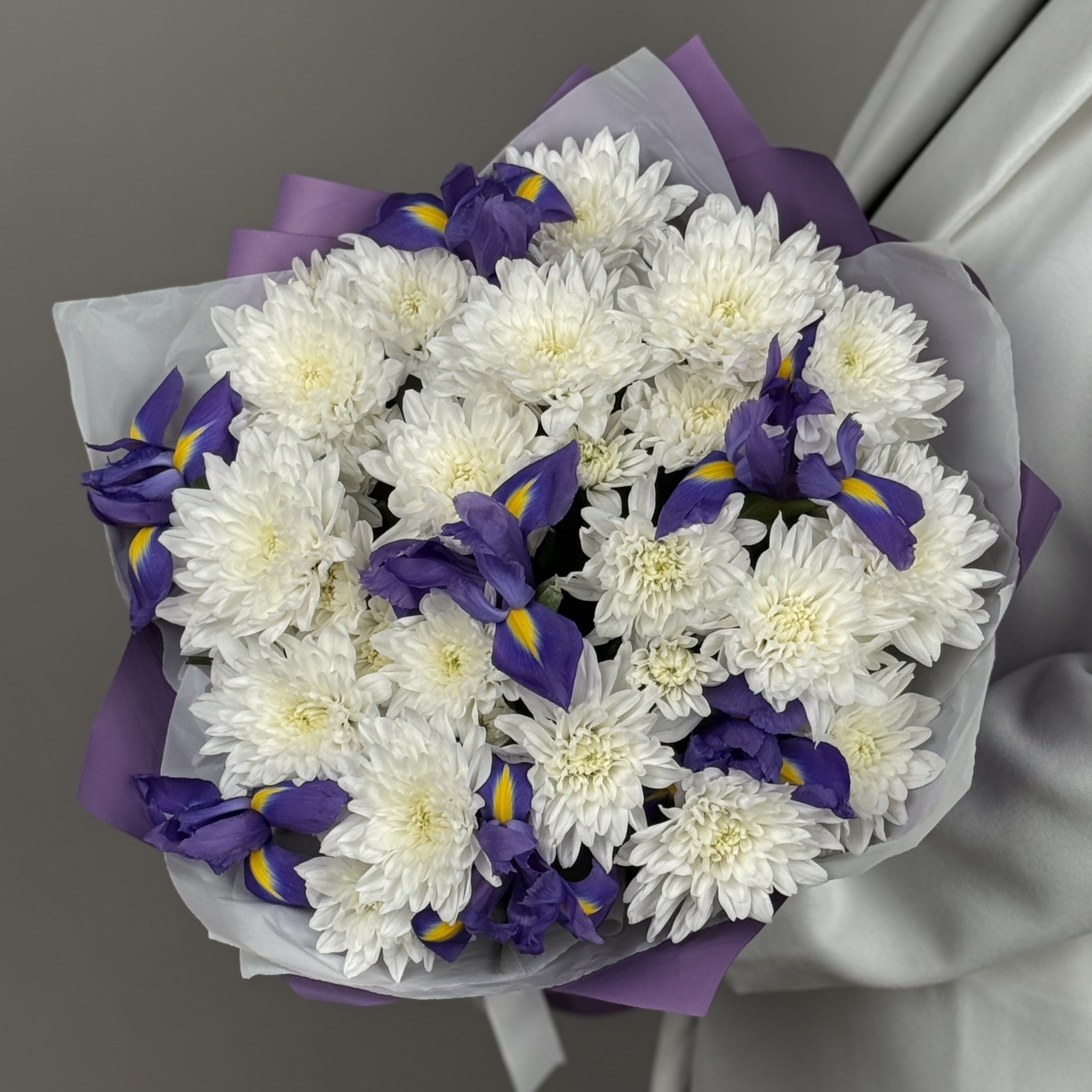 Ирис-7, Хризантема кустовая-6, Коробка-Переноска-1, Лента-1, Пленка-1