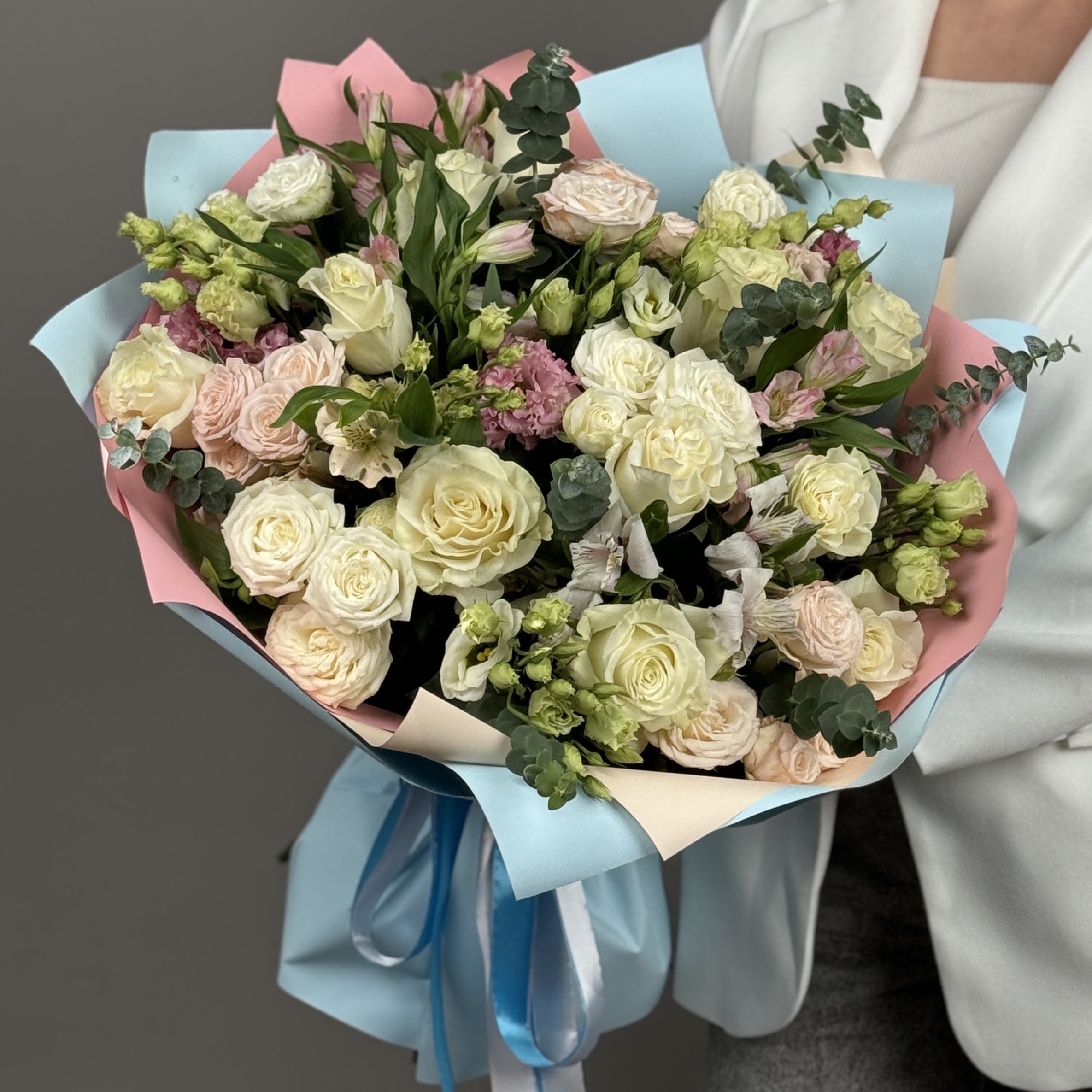Альстромерия-5, Роза 60см-11, Роза кустовая-6, Эустома-7, Эвкалипт банч-0,3