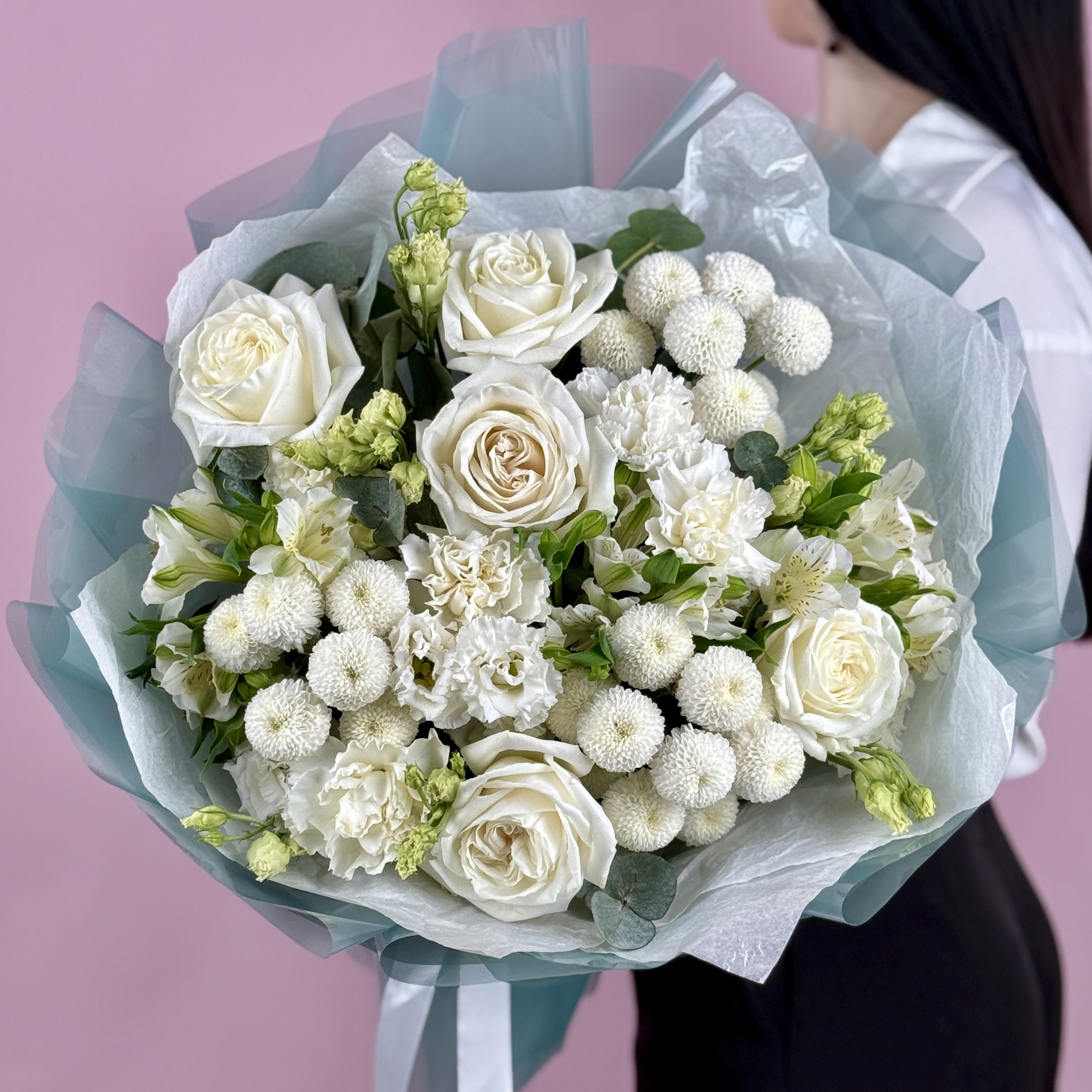 Очаровательный белый букет. Будет бережно доставлен в аквапаке и транспортировочной коробке.